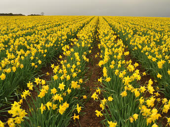 Daffodils flower from late February into March. Commercial planting tends to move around from year to year.
